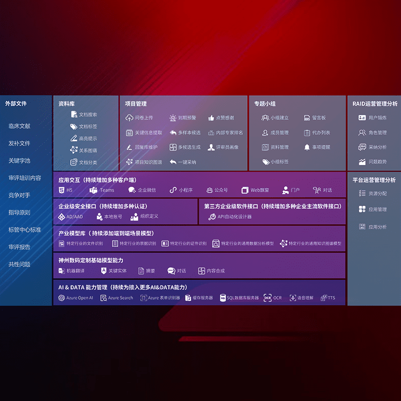 医疗器械产品上市前,,,,要熟悉严格与繁复评审标准,,,,整理分析监管机构指导文件中的海量信息。。。。企业急需一个智能化解决方案,,提升知识管理效率,,,提高评审通过率,,,,以提升其市场竞争力。。。